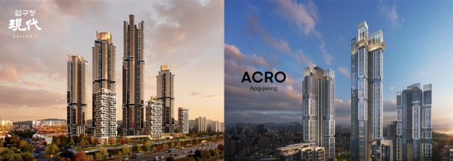 (왼쪽부터)현대건설 '압구정 현대 갤러리아', DL이앤씨 '아크로 압구정' 조감도 [사진=각사]